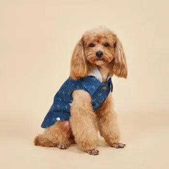 Cozy Denim Dog Jacket – Warm Cotton Pet Coat with Cute Bear Embroidery