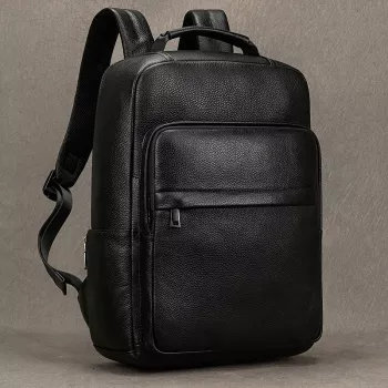 Genuine Leather Laptop Backpack for Men & Women – Stylish Black Travel Bag for 14-16 Inch Laptops