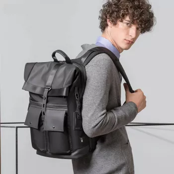 Men’s Waterproof Leather Laptop Backpack with USB Port