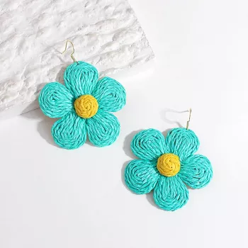 Handmade Boho Rattan Raffia Flower Drop Earrings